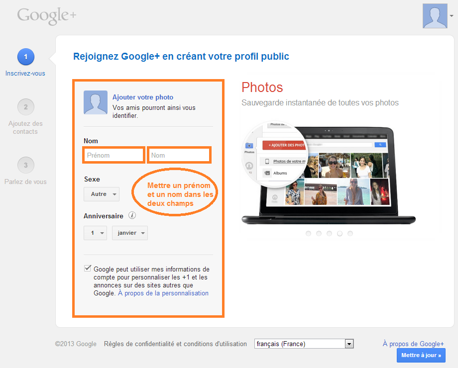 1) CrĂ©er un profil avec un vrai prĂ©nom et nom: Google n’aime pas les noms de profil avec des mots-clĂ©s