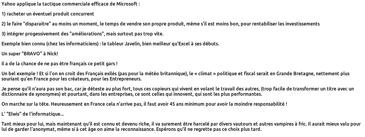 2) Mes robots récupérent les commentaires au format HTML, et je fais une extraction de ces derniers dans un autre format exploitable par la plupart des outils de traitement automatique