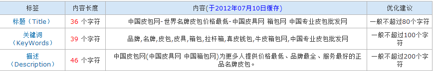 Les méta tags de http://www.bag86.com restent conformes aux règles des moteurs de recherche chinois car elles ne dépassent pas la limite de caractères et comportent des mots-clés :
