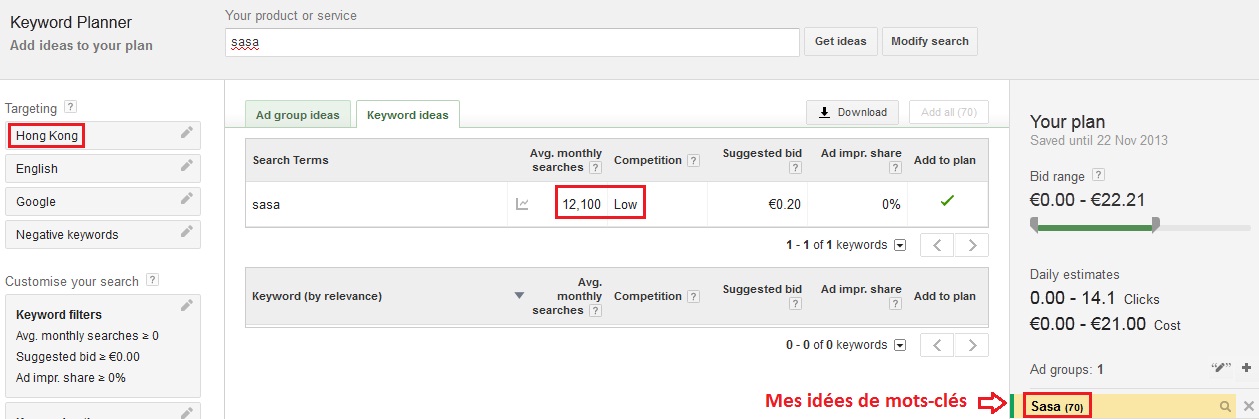 1) Utilisez Google Keyword Planner pour trouver les mots-clés les plus pertinents liés à votre marque et à vos produits (noms, déclinaisons, etc.)