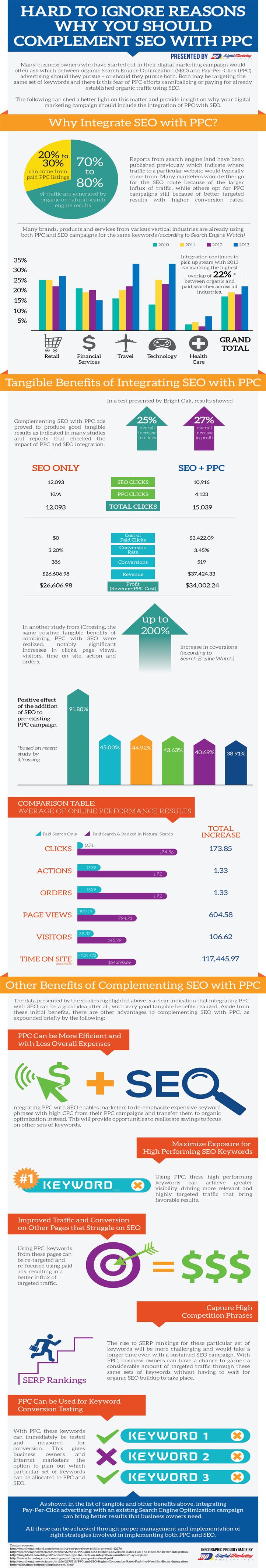 Il faut savoir qu’environ 70% Ă 80% du trafic provient du SEO, et seul 20% Ă 30% provient du SEA. Le SEO est donc une stratĂ©gie incontournable Ă mettre en place pour toutes entreprises. Comme on peut aussi le constater dans les statistiques de l’infographie, en associant SEO et SEA, on obtient de meilleurs rĂ©sultats (nombre et taux de conversions plus Ă©levĂ©s, plus de clics sur le site, etc.) que lorsqu’on fait uniquement du SEO.