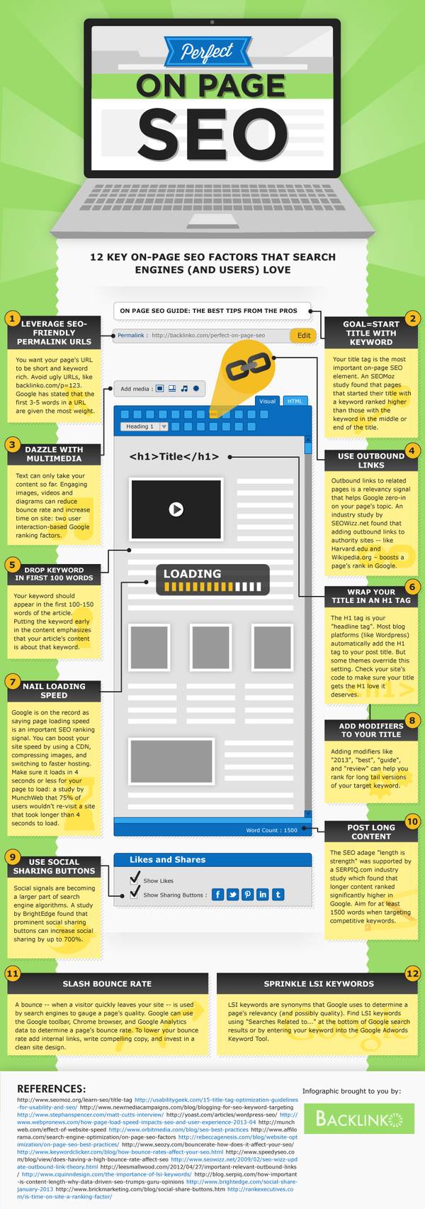 Les sources les plus récentes de cette infographie datent d’avril 2013. Mais, les critères essentiels à optimiser resteraient les mêmes : title, meta description, etc. et il est toujours bon d’avoir une petite piqûre de rappel !