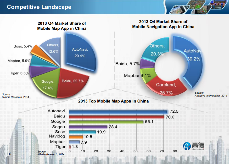AutoNavi est spécialisé dans le mobile, et cela marche super bien. En Chine, les individus sont trÚs connectés, et recherchent trÚs souvent depuis leurs portables ou leurs tablettes, et cette spécialisation est un réel bonus pour cette entreprise.