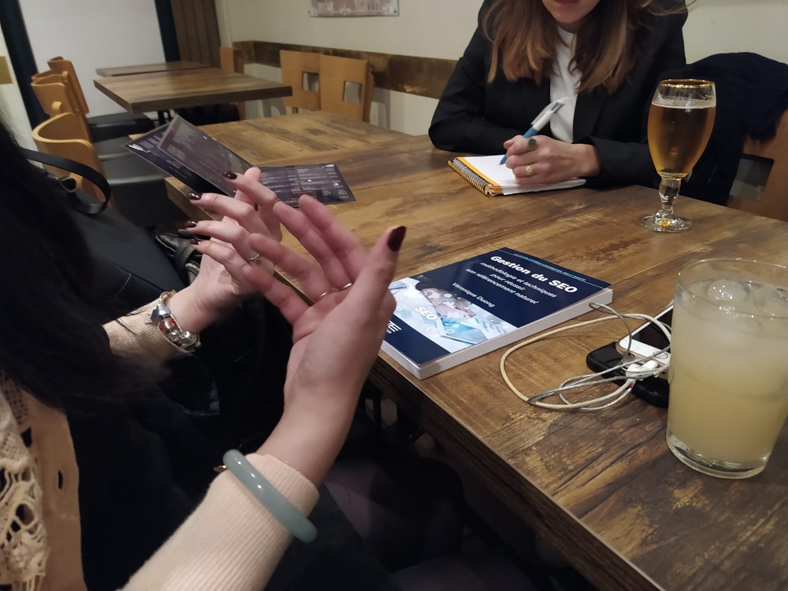 Pour ceux qui me suivent, vous savez que j’ai organisĂ© un apĂ©ro-atelier le mardi 28 septembre 2021 Ă Paris autour de mon ouvrage « Gestion du SEO ». J’appelle dĂ©sormais mes apĂ©ros par « apĂ©ro-atelier » car c’est un petit format que j’ai « inventĂ© » pour allier l’utile (apprendre le SEO !) Ă l’agrĂ©able (boire un petit verre autour d’une planche de charcuterie) đ hehe.