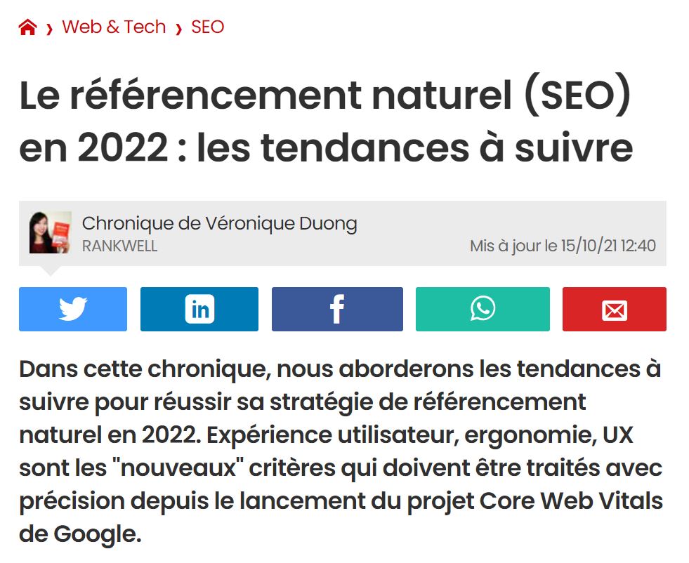 Les tendances SEO Ă suivre en 2022 : UX, Core Web Vitals, Mobile