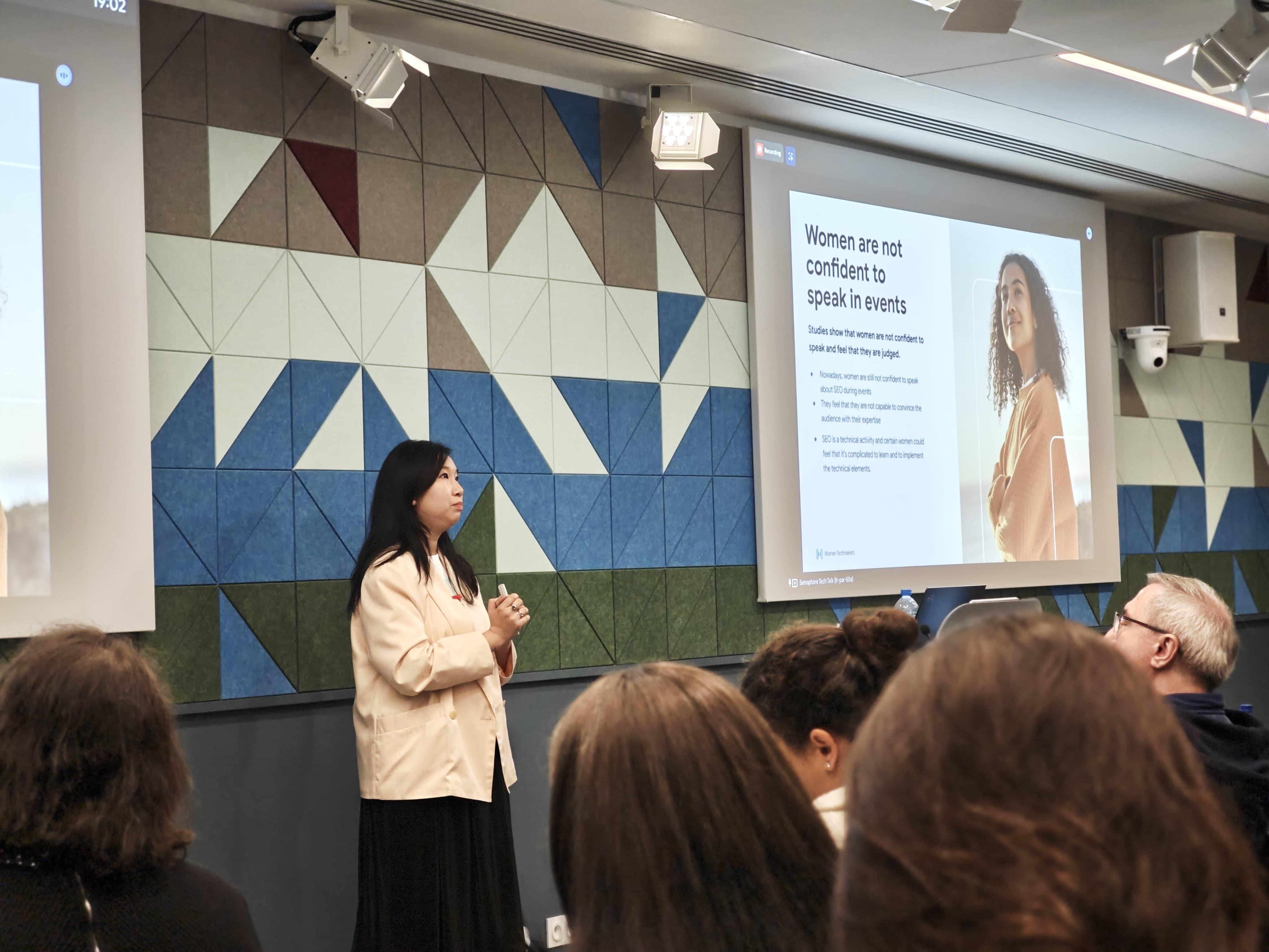 Depuis que je suis devenue Ambassadrice Google Women Techmakers, j’ai pu participer Ă quelques Ă©vĂšnements WTM et mercredi 18/09/24, j’ai eu la chance de prendre la parole en tant que confĂ©renciĂšre. J’ai parlĂ© des IA qui vont aider les femmes Ă rĂ©duire les tĂąches manuelles et Ă se concentrer sur leur crĂ©ativitĂ©.