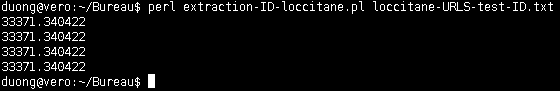 Une fois que le script a Ă©tĂ© lancĂ© dans le terminal de Linux avec le fichier placĂ© en paramĂštres, les IDs sont tous extraits (c’est un test ici, c’est pourquoi tous les IDs sont les mĂȘmes) :