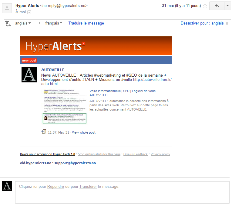 La conclusion que je peux tirer de cette illustration, est que la marque devient trĂšs stratĂ©gique. Pour mieux se sortir d’une pĂ©nalitĂ© de Google, il vaut mieux se concentrer sur l’image de la marque et les mots-clĂ©s dits « brand ». Pour le moment, ma marque est toute petite, mais je vois qu’il y a quand mĂȘme des recherches rien qu’avec le mot « autoveille » :