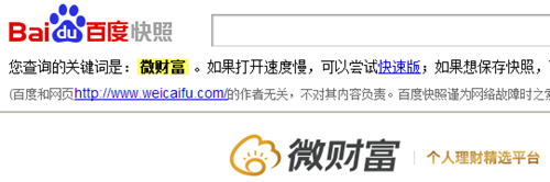2) Utiliser le robots.txt et user-agent pour déterminer les visiteurs. Mettre un Allow: sur Baiduspider vers la version http, puis faire une redirection 301 pour rediriger l’utilisateur sur la version https. L’exemple ci-dessous montre que Baidu a crawlé et indexé la version http de Weicaifu, mais les internautes sont redirigés sur la version https.