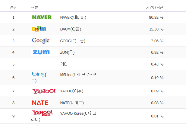 - Corée du Sud : Naver, Daum, Google (moteurs) et KakaoTalk, LINE